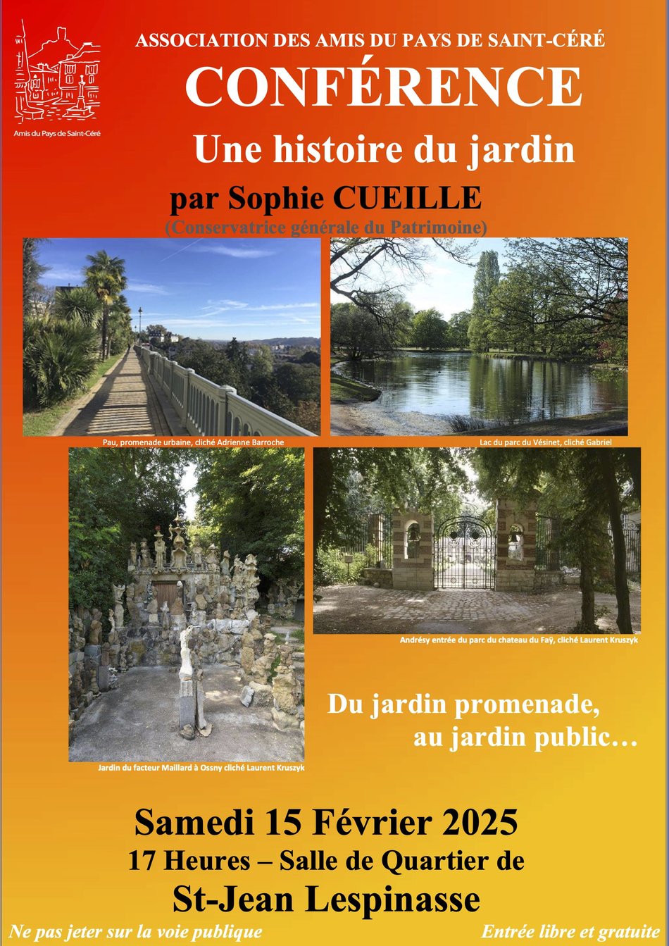 Conférence : Une histoire du jardin par Sophie Cueille - Conservatrice Générale du Patrimoine. Sophie Cueille travaille à la Direction générale des patrimoines, Service du patrimoine, Mission de l'Inventaire général du patrimoine culturel et a écrit de nombreux articles  et ouvrages sur  les jardins. dont